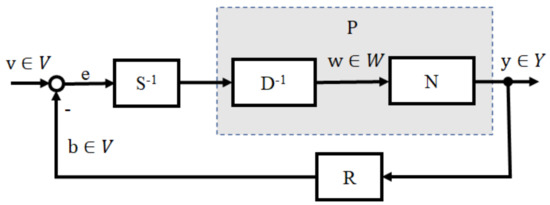 As shown in Figure 4, provided a nonlinear operator control system, operators V and Y are the input and output space of this plant. Let (N, D) be the right factorization of P. The feedback nonlinear control system shown in Figure 4 is BIBO stable if there exist two stable operators R: Y → V, S: V → V (S being invertible as well) that satisfy the Bezout identity equation:
