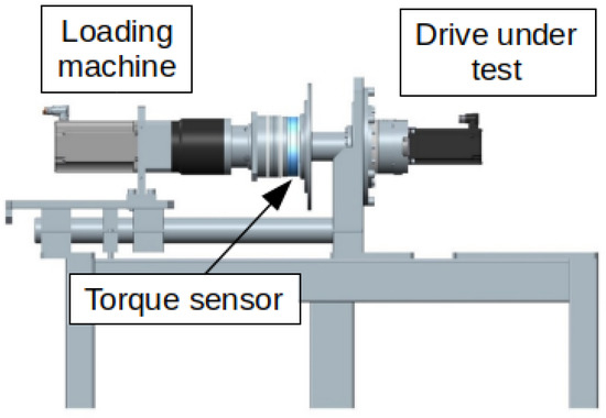 Both drives, DUT and LM, were fed by industrial SIEMENS Sinamics S120 servo drives with a single SIMOTION control unit. The actual torque on the common output shaft was measured by the torque transducer Magtrol TF213. The measurement range was 500 Nm with 0.1% accuracy. The sensor was mounted directly on the DUT output flange, and on the other side, it was connected via flexible coupling to the LMs planetary gearbox output shaft. The electric output of the sensor was connected to and evaluated by the SIMOTION control system.
