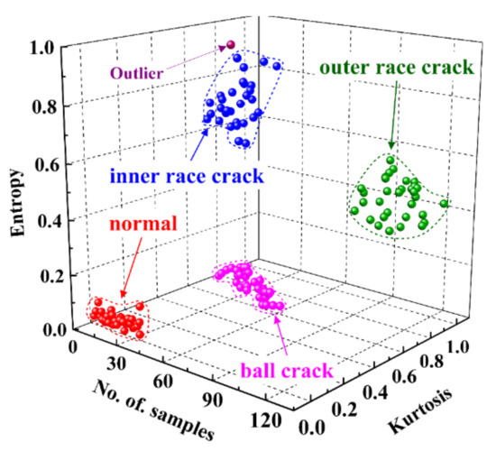 - Weak bearing characteristics may be effectively extracted using the proposed kurtosis and frequency domain sample entropy-based feature extraction method.
