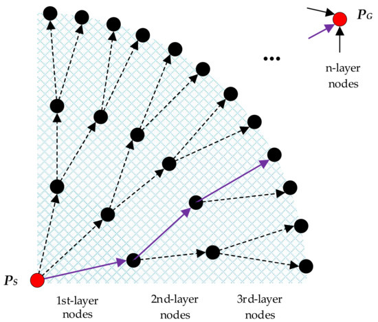 In recent decades, path planning methods developed rapidly, resulting in numerous new such methods [3]. Path planning methods can be mainly divided into two categories, i.e., graph search-based and sampling-based [3]. Typical graph search-based methods include Dijkstra, A*, D*, field D* and several other variants [4,5,6,7]. The graph search-based path planning methods can find the optimal path accurately, but such algorithms should traverse the surrounding of the current node and select the minimum cost node, which leads to large computational efforts. To reduce the calculation time the algorithm takes to search each interval, an efficient A* algorithm was proposed [8]. Guruji et al. [9] proposed an online path planning method for a mobile robot in a grid-map environment, using a modified real time A* algorithm. In obstacle-avoidance path planning, Duan et al. introduced a safety–cost matrix in the A* algorithm and the heuristic function was modified to ensure the optimal safety path in different environments [10].