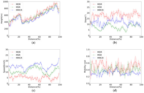 As described above, mobility prediction methods usually divide the terrain into GO and NOGO [19], where GO represents the area where the vehicle can traverse and NOGO is the opposite. The terrain points with slopes greater than the kinematic limits of the UGV are marked as NOGO, while soil areas with a CI less than VCI are marked as NOGO. Nevertheless, it is difficult for decision-makers to determine an optimal route for the UGV to travel from the GO areas. Consequently, it is necessary to quantify the mobility of the UGV in the GO areas. In the process of quantifying mobility, the influence of terramechanics and terrain parameters should also be considered.