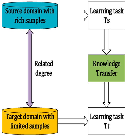 The transfer learning aims at building an effective prediction model for an application with a limited quantity of labeled datasets in a target domain by leveraging rich labels from a different but related source domain, as shown in Figure 1. Provided that a learning task is in the source domain and a prediction task is in the target domain , the source knowledge obtained from the in is transferred to solve a new but related in more efficiently and effectively, where and .