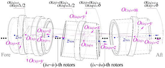 | / | Assembly position/pose error of iM-th positioning structure on middle iM-th rotor relative to common reference line OEiFiF-OEiAiA |
