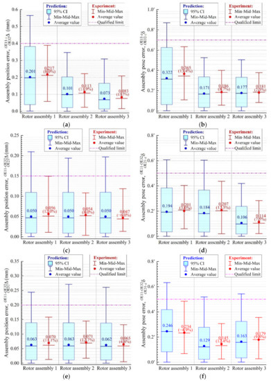 - Predictions and experiments based on three aeroengine rotor assemblies show that: The min-max ranges of the six assembly errors obtained from 30 experiments for each assembly are within those of the corresponding 100,000 predicted results. The deviation rates of the corresponding experimental average values of the six assembly errors relative to those of the predictions are all lower than 14%. The proposed prediction method has acceptable accuracy and practical significance.