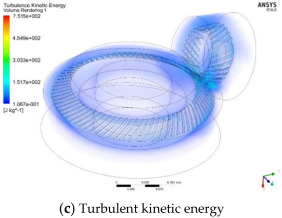 The turbulent kinetic energy and turbulent dissipation rate of the fluid domain can be obtained by the calculation of fluent post-processing. The volume, turbulent kinetic energy and turbulent dissipation rate of the fluid domain in the orthogonal test are shown in Table 7.