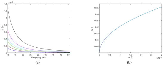 In Figure 3, measurements and were acquired using the experimentally determined parameters of the sweep rate, , length, and T with a bandwidth from 10 to 51 Hz in testing. The signal was split into M blocksizes of equal length, and to reduce the effects of leakage, they were multiplied with the Hanning window .