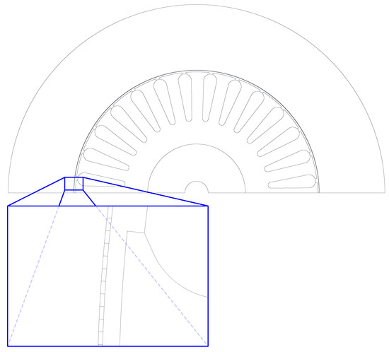 Figure 3. Cross-section of the 6PIM with the stator winding replaced with a current sheet to enable harmonic loss analysis (elementary conductors shown in the enlarged detail).