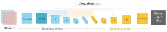 - Laina, I.; Rupprecht, C.; Belagiannis, V.; Tombari, F.; Navab, N. Deeper depth prediction with fully convolutional residual networks. In Proceedings of the 2016 Fourth International Conference on 3D Vision (3DV), Stanford, CA, USA, 25–28 October 2016. [Google Scholar]