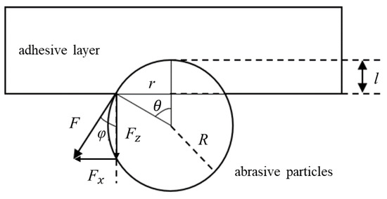 The force analysis of the spherical abrasive particles in the adhesive layer is shown in Figure 3. φ and θ are the reciprocal angles and R is the radius of the sphere.