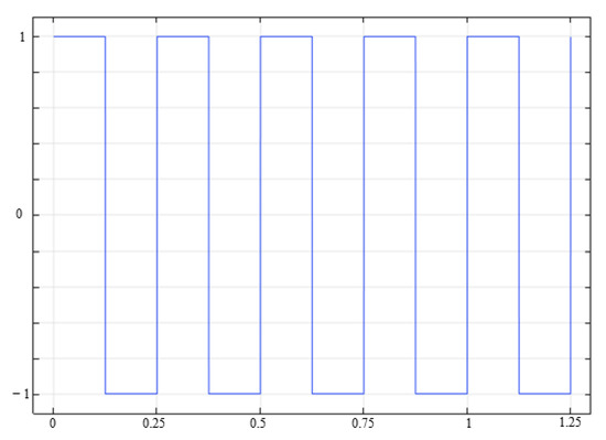 The field model is based on the basic physical field simulation function of COMSOL, and the specific parameters of the electric field, particle field, and adhesive layer fields are set according to Table 2, after which the abrasive planting process is directly stimulated by the built-in calculation iteration function. First of all, the electric field is set. In industrial production, some companies use sinusoidal alternating current and some use direct current to ensure the quality of coated abrasives, but the most commonly used is a rectangular square wave, which is the most favorable to the stability of the abrasive planting process and reduces the cost of electric field modulation.