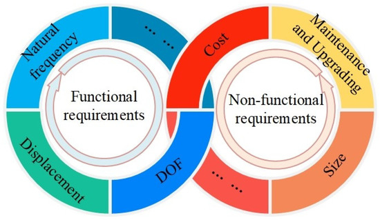 In recent years, the modular method has been increasingly proposed for the automotive industry [19], aerospace [20], and home furniture [21]. A modular product can be reconfigured within a limited time, without much more complexity and without buying or manufacturing new modules. Thus, the response to changing user requirements in modular MPSs will be faster than monolithic MPSs. Generally speaking, functional requirements (including DOF, displacement, natural frequency, and resolution) and non-functional requirements (including low cost, post-maintenance and upgrading, and compact size) must be addressed, as shown in Figure 1. As mentioned above, monolithic MPSs are tailored for a specific task, with no function flexibility. However, for the modular method, a product is divided into a number of parts and sub-parts, which can provide the ability to solve different requirements easily by combining with different modules. To clarify this point, the introductions of these requirements are described in the following subsections.