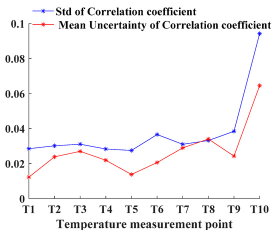Figure 12. Standard deviation (Std) and mean uncertainty of the correlation coefficient of temperature measurement point.