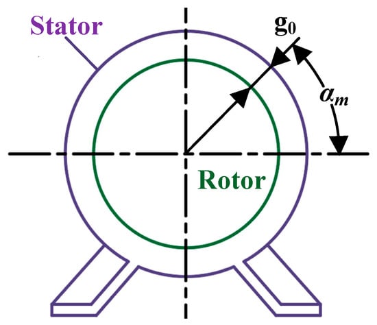 In Equation (1): μ0 is the vacuum permeability, αm is the mechanical angle used to characterize the peripheral position of the air gap, t is the time, g0 is the average air gap length of the generator, and Λ0 is the air gap magnetic conductivity constant.
