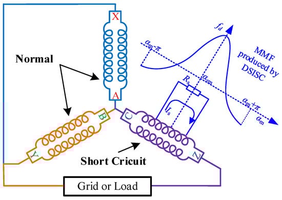 By putting Equation (9) into (10), the generator phase current expression under DSISC fault is obtained, as follows:
