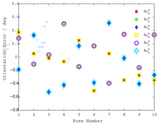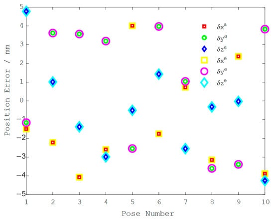 Therefore, the proposed pose error model is verified to be correct and to represent the kinematic parameter errors of the parallel robot.