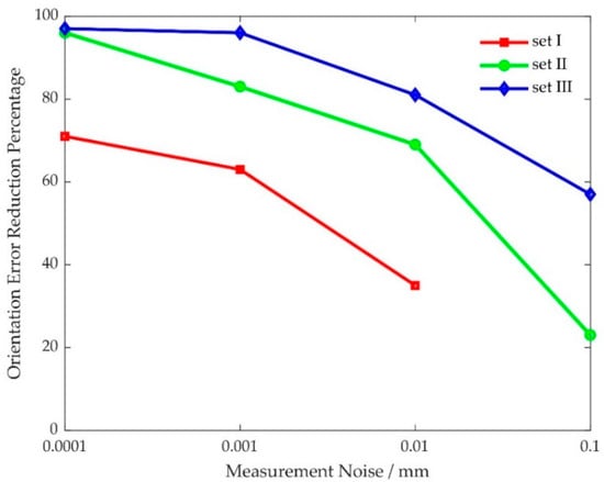 Orientation error reduction percentage versus measurement noise.