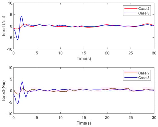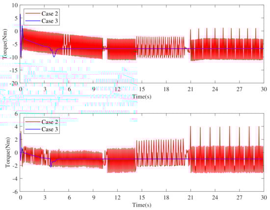 Torque of the robot manipulator with model uncertainty in Case 2 and Case 3.