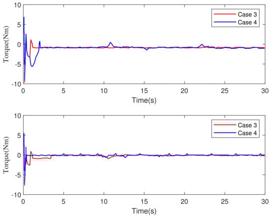 Torque of the 2-DOF robot manipulator in Case 3 and Case 4.