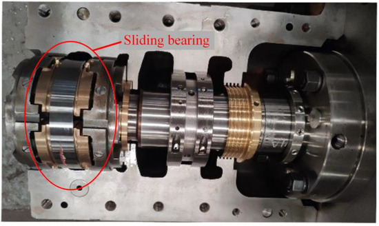 The sliding bearing plays the role of supporting the rotating shaft and reducing the friction during the operation of a multi-stage centrifugal pump [21], a typical structure of which is shown in Figure 2.