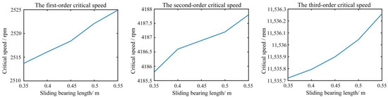 Influences of the sliding bearing length Lb on the first three critical speeds.