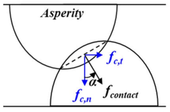 where α is the angle between the asperities of two surfaces. Total contact forces in normal and tangential directions are obtained by integrating Equations (8) and (9) with respect to the contact area as follows: