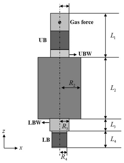 In this research, the multiple-stage shaft of a SC was used as an analytical model. The SC compresses internal gas by rotating a scroll existing at the top or bottom of the rotor. Figure 6 shows an analytical multiple-stage rotor model of a SC supported by two journal bearings (UB, LB). The parameters of the SC model, two journal bearings, and surface roughness of the rotational shaft and the journal bearings represented by Table 3, Table 4 and Table 5 respectively. The external forces are gas force, bearing forces at UB and LB, and centrifugal forces generated by the UBW (Upper Balance Weight) and LBW (Lower Balance Weight). The UBW and LBW are designed to compensate for the gas force through centrifugal forces. The masses of the UBW and LBW are 0.2224 kg and 0.0901 kg, respectively. The centrifugal forces according to the rotational speed are shown in Table 6. The gas force acting on the top of the SC is assumed to be 3000 + 250 sinθ N according to the rotational angle. The number of finite elements of a shaft to calculate the displacements and tilting angles is 50. The number of finite elements for the upper bearing and lower bearing to calculate oil film reaction forces and contact forces is 360, respectively. Furthermore, to calculate the friction coefficients and power loss according to the rotational speed, we performed the simulation from 20 to 200 Hz at intervals of 30 Hz.