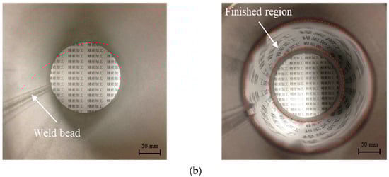 With the development of industrial manufacturing technology, certain thick-walled tubes are widely used in industrial production, such as the transportation of high-purity biomedical liquid, engineering, energy storing, food manufacturing, and many other fields. For the internal surface of welded stainless-steel tubes with a great surface roughness, the bacterium, dirt, or liquid easily remain in the tiny gaps or pits of the internal surface, and they are cleaned in different ways. This seriously affects the purity of the stored liquid and the safety of food or biomedical manufacturing [,,]. The accumulated dirt may also cause corrosion, cracks, and even lead to leakage or explosions. Furthermore, the internal wall surface with slight unevenness can cause local stress concentrations when the liquid passes through the tube. Thus, the internal surface accuracy of tubes in container and piping systems is in increasing demand to prevent the deposition and residue of pollutants.