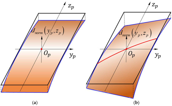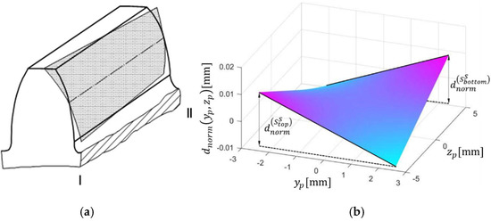 The normal deviation in Figure 3 is characterized by orthogonal polynomials in the meshing plane coordinate system. Further, through deviation decomposition, the normal deviation can be decomposed into various deviations on the tooth flank [12].