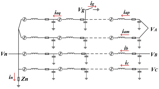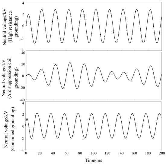 - The neutral point is grounded through the high resistance of the grounding transformer [21], and the primary side of the neutral point grounding resistance is equivalent to R: