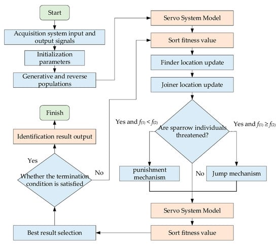 Owing to the instability of the actual system and existence of local extreme points in the objective function, it is difficult to obtain high-precision parameter estimates using conventional methods [17]. Accurate identification of the multiple parameters of the servo system remains a significant problem. In recent years, the rapid development of meta-heuristic algorithms, such as the genetic algorithm [18], particle swarm algorithm [19], grey wolf optimizer algorithm [20], whale optimization algorithm [21], and chimp optimization algorithm [22], has introduced many new perspectives for model identification and parameter estimation. In [23], the bat algorithm was adopted for the system identification problem of adaptive infinite impulse systems, achieving a balance between the intensive and diversification phases. In [24], an enhanced global flower pollination algorithm (GFPA) was used for the parameter identification of chaotic and hyperchaotic systems, and the experimental results showed that the introduction of chaotic maps and optimal information-guided search improved identification. In [25], an improved adaptive step-size firefly swarm optimization algorithm (IASGSO) was used for the identification and optimization of nonlinear Wiener system model parameters. In [26], a selfish herd optimization algorithm based on the chaos strategy (CSHO) was applied to solve the IIR system identification problem. The introduction of the chaotic search strategy improves the optimization accuracy, convergence speed, and stability of the identification of the most adaptive infinite impulse response systems. In [27], a type 2 fuzzy neural network (T2FNN) and its learning method using the grey wolf optimizer (GWO) for system identification were proposed. In [28], a variant of the particle swarm optimization (PSO) algorithm called finite-time particle swarm optimization (FPSO) was investigated as a system identification technique. The experimental results show that the FPSO algorithm exhibits excellent performance in estimating the parameters of simulated linear and nonlinear systems with and without noisy data. From [29], it is observed that the chaotic optimization algorithm based on the Lozi map exhibits robust performance, short running time, and ideal ability to find local minima, and is a suitable choice for estimating the unknown parameters of nonlinear dynamic systems. In [30], a genetic algorithm (GA) method was proposed to estimate the characteristic parameters of the operating gear using only the return loss data.
