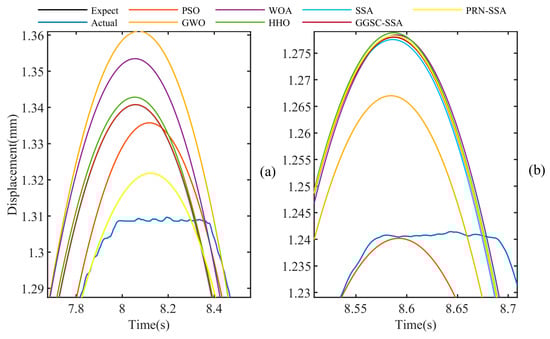 Partially enlarged view of wave peak (sinusoidal input): (a) Period is 2 π; (b) Period is 0.5 π.