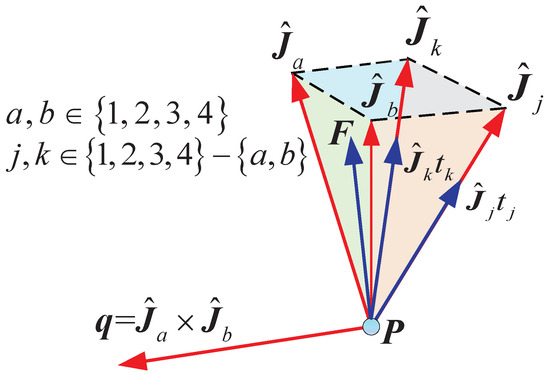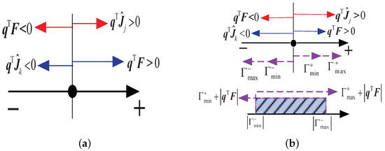 As displayed in Figure 6a, the projections of the tension (or ) and the generalized external force on are both scalars. Consequently, there always exists a tension (or ) to resist the the generalized external force as long as the signs of (or ) and are different. However, ranges from to . Hence, the components of and are bound with and as shown in Figure 6b. Therefore, the MBC is given as follows: