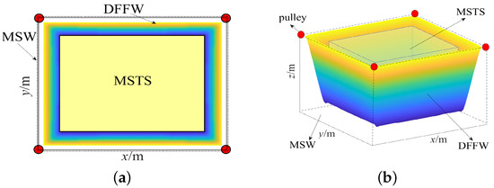 As illustrated in Figure 8b, the horizontal section of the DFFW is a rectangle, which is analogous to the rectangle formed by four pulleys. In order to guarantee the shooting effect, a cube named the minimum shooting task-space (MSTS) is defined within MSW and is required to be included within the DFFW.