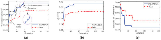 - Li, Y.; Xu, Q. GA-based multi-objective optimal design of a planar 3-DOF cable-dDriven parallel manipulator. In Proceedings of the 2006 IEEE International Conference on Robotics and Biomimetics, Kunming, China, 17–20 December 2006; pp. 1360–1365. [Google Scholar] [CrossRef]