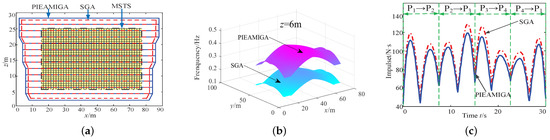 Therefore, the cable length and tension are larger than those at the rest points and thus the impulse. It can be observed that the curve is not completely symmetrical on both sides with as the center. However, the left side is larger and the right side is smaller. As the segment is on the left side of and the motion direction is consistent with the direction of gravity, the tension is larger; the motion direction of the segment on the right side of is contrary to the gravity direction, and therefore the tension is smaller. Thus, the impulse on the segment is larger than that on the segment . Similarly, the impulse applied on the CPTDS on the segment is larger than that on the segment .