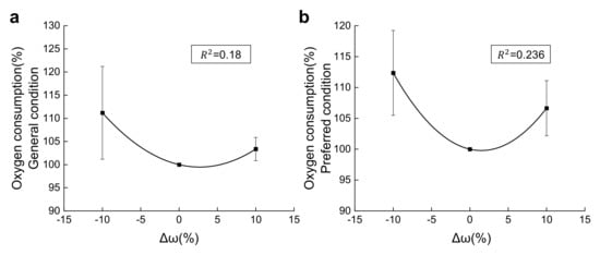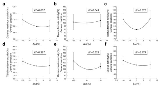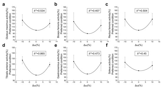 25]. As there was a more accurate result from quadratic fitting rather than in linear fitting, it is believed that the resonance did occur during the assisted walking under the preferred condition. However, for the general condition, there was no significant difference between the R