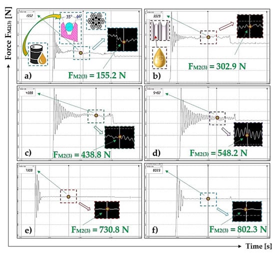 z = 294 N, was achieved during experimental measurements when the surface of the semi-circular groove was contaminated with oil. The mean value of friction coefficient f
