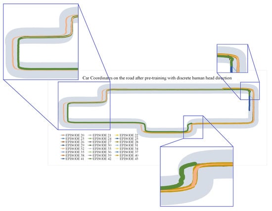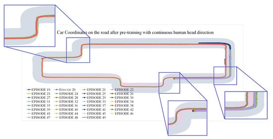 - When a driver faces a curve, they receive the rotational and acceleration stimulation and control the head to the curve direction [29,30]. Therefore, the human head direction is closely related to the direction of the road curve [30,31]. We used human head direction to train the policy without any effort from the human during training.