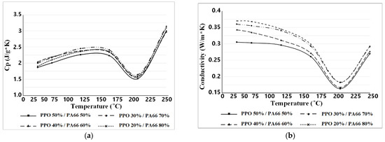 TCA results. (a) Temperature–specific heat; (b) temperature–conductivity.