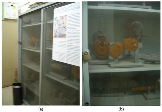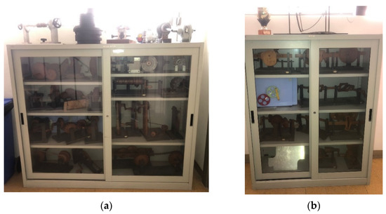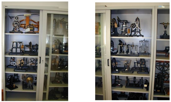 Figure 18 shows two characteristic aspects of the preservation of the models in the Italian engineering schools, considering the fact that the models are crammed together without a suitable space between them, which not only prevents possible use, but does not allow complete visibility of each model. In addition, the models built in the offices are considered in the same way as those coming from external purchase, such as those from the Schröder-Reuleaux collection. In particular,