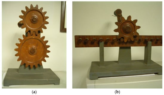 45]. The wooden models mainly concern gear wheels, cams, pulleys, chains, and joints.