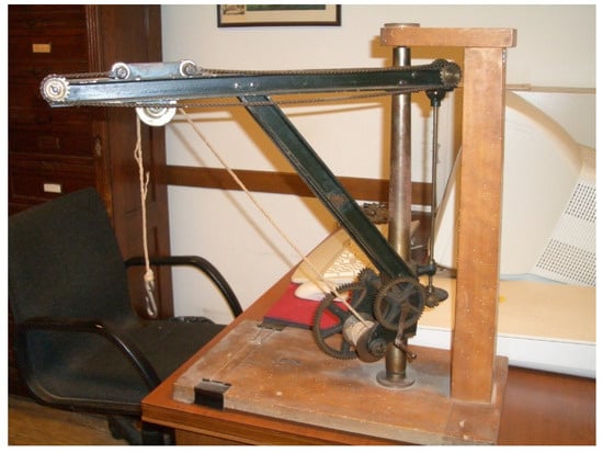 Figure 11 shows a very small-scale model of an industrial crane, made with essential components in terms of both structure, and components for the transmission of power necessary for the application purpose. The model is made with metal elements and with bronze gear wheels to denote the attention to detail of the functionality of the model, which is also completed by suitable ropes for a hoist application. This model appears to have been built in the 1970s, perhaps more for research needs or even better as a scale model for design purposes, even if it seems to have been used for didactic purposes, limited to the use of a few students with thesis work. This example is significant to represent how a combined physical model with metal and wooden elements, even in modern times, has useful and interesting results from various technical-scientific aspects, but also from a historical point of view, it shows how design and research activities were accompanied with functional and detailed physical models.