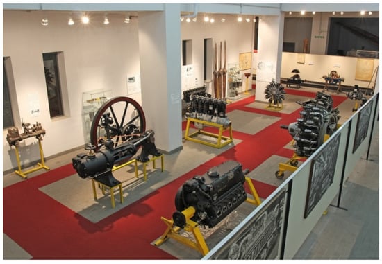 Figure 20 shows a panoramic view of the main museum itinerary, hosting a variety of internal combustion engines and the first steam engines, with a clearly indicated route to facilitate a visitor, according to the historical development of the engines on display, many of which function with the help of a modern electric actuation system.