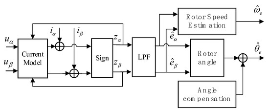 It can be seen from (12) that the sliding mode function contains back EMF information, so the speed and rotor position can be calculated. Since the back EMF contains chattering, a low-pass filter (LPF) is usually used to filter out high-order harmonics.