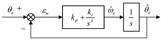 where kp is the proportional gain, ki is the integral gain, and λ (0 < λ < 1) is the hierarchical factor. It can be seen from (27) that the back EMF was not included in the FN-PLL transfer function; thus its performance will not be affected by the change of speed, and the FN-PLL can effectively improve the robustness of the system. On the other hand, fractional integration has more degrees of freedom than integer integration. Therefore, FN-PLL achieves better performance by appropriate sequential selection.