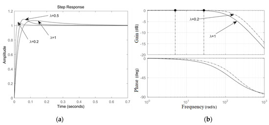 Step Responses for Different λ Values and Bode Plots: (a) step response with different λ; (b) bode diagram with different λ.