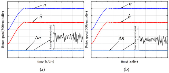 Rotor speed experimental results: (a) traditional SMO; (b) improved SMO.