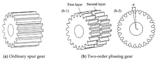 - Chen, X.; Wei, J.; Zhang, J.; Zhang, C.; Wang, C.-L.; Xu, Z.; Gao, H.; Zhang, A.; Yu, G. A Novel Method to Reduce the Fluctuation of Mesh Stiffness by High-order Phasing Gear Sets: Theoretical Analysis and Experiment. J. Sound Vib. 2022, 524, 116752. [Google Scholar] [CrossRef]