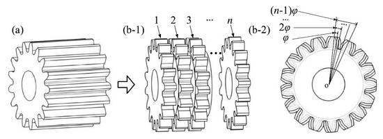 As far back as 1970, Seager [44] attempted to describe the load distribution among planets in a simple PGS by conducting an approximate theoretical study of loading. One of the most important components of planetary gear pair research was developing a load-sharing model. Different characteristics, such as the number of planets, floating systems, and the flexibility of various sections, all had a role in this development’s progress. Bearing manufacturing errors, gear manufacturing errors (eccentricity error, gear thickness error, base pitch error), assembly errors, and meshing clearance variation induced by the simultaneous floating of all gears were taken into account in a mathematical model by Mo et al. [45]. Their load-sharing approach was validated by experiments. An —planet helical planetary gear set, with six degrees of freedom (DOF) associated with each gear and the carrier, was studied in 2017 by Leque and Kahraman [46]. As a method of recording the load and time dependence of gear meshes continuously, their model provided a distribution of gear mesh load. All types of manufacturing errors are included. They used their model to show the combined influence of errors on planet load-sharing to assist designers in the design of planetary gear sets.