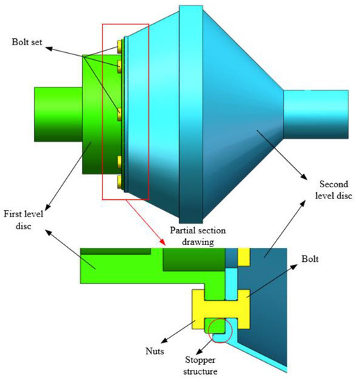 In order to avoid the problem of stress concentration in the rotor after tightening of the bolts, the maximum preload and the minimum preload of the individual bolts were not more than 20% between them. Then, the multi-stage rotor bi-objective optimization constraint is shown in Equation (17).